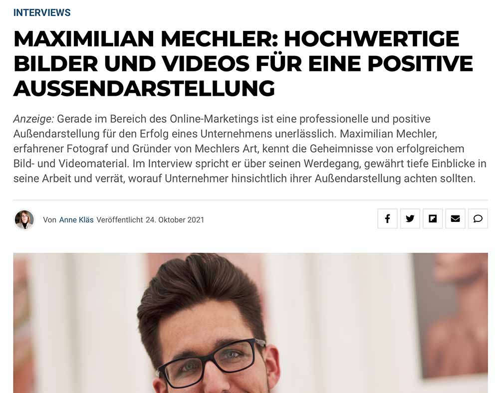 Maximilian, Geschäftsführer von Mechlers Art, begleitet jede Filmproduktion persönlich vor Ort. So entsteht nicht nur Qualität – sondern eine Atmosphäre, in der du dich sicher fühlst und souverän wirkst.